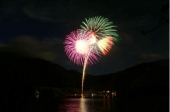迫力の湖上花火のご案内です。 湖の上に浮かぶ赤・青・黄色の夏花火! 山間に響き渡る大迫力の音とともにお楽しみ下さい。 (2025-08-17)